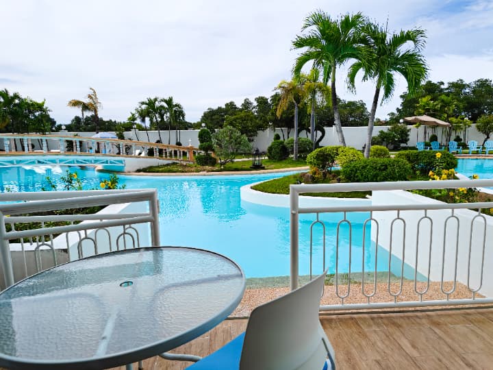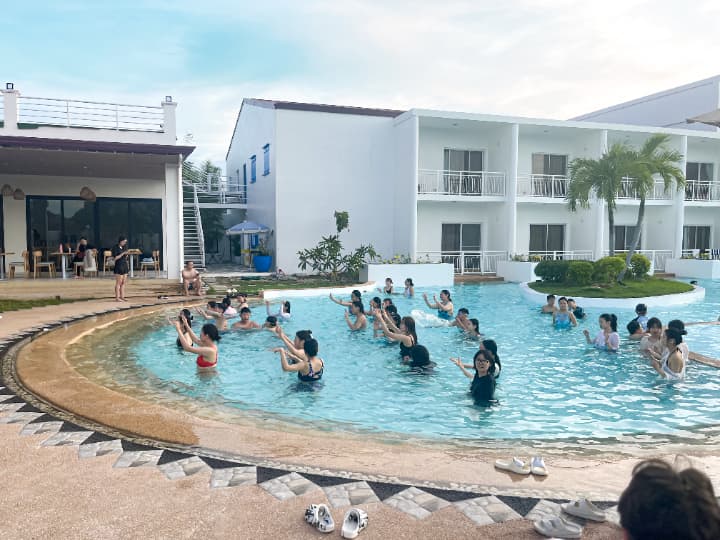 リゾートホテル型の贅沢な敷地内には、大型プールやカフェを完備。特にベランダから直接プールへ入れる「プールアクセスルーム」は、学習の合間に究極のリフレッシュを求める方に最適な、プレミアムな滞在環境を提供しています。