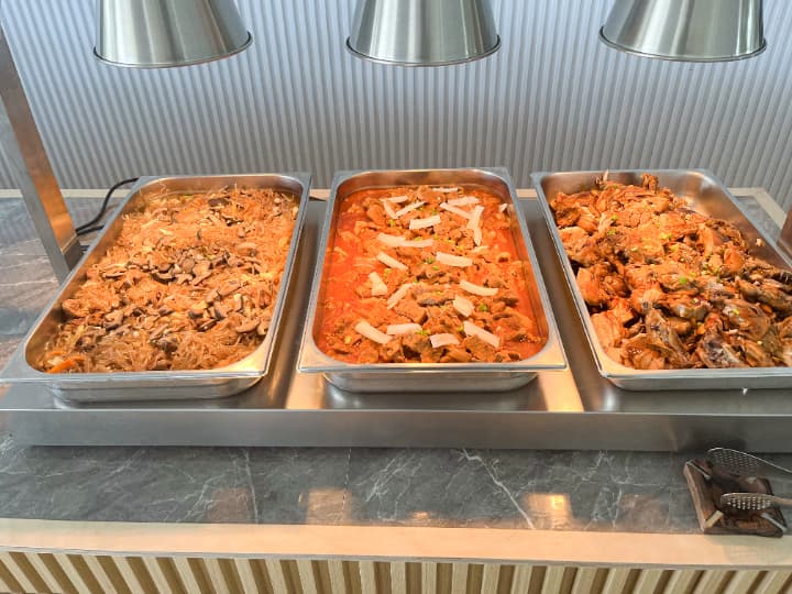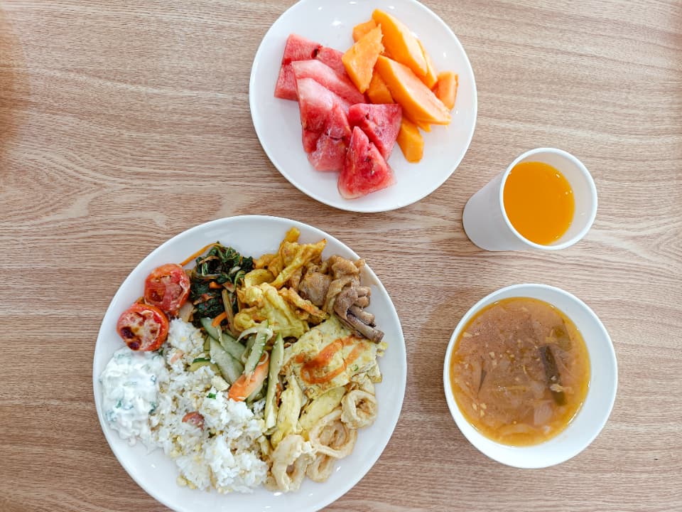 毎日の食事は、多国籍なメニューが並ぶビュッフェ形式。学内のパン工房で毎日焼き上げられる自家製パンは特に好評で、健康に配慮したバランスの良いメニューが長期滞在者からも高く評価されています。