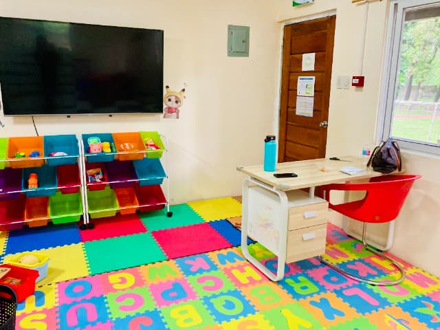 キャンパス内には、4歳から受け入れ可能な幼稚園があり、室内には絵本や知育玩具、ピアノやお絵描きボードなどが設置されています。お子さまの年齢や発達段階に応じたカリキュラムが提供されており、安心して学べる環境です。